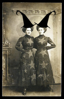 Les Mysterieux Carnival was created by two art bloggers who became great friends. We both started blogging in January 2010 and became friends through the first Practical Magic blog party. Marfi blogs at Incipient Wings and Anna at Frosted Petunias. We are mixed media artists, cat (and dog) fanatics, collectors of all things sparkly and moms. We hate the heat, glitter obsessively and are hopelessly addicted to frosting. Marfi is working on her very own magical gypsy wagon. Anna is dreaming of a way of getting her own gypsy trailer so she can visit Marfi and gossip all night over cupcakes and bowls of Spanish rice.